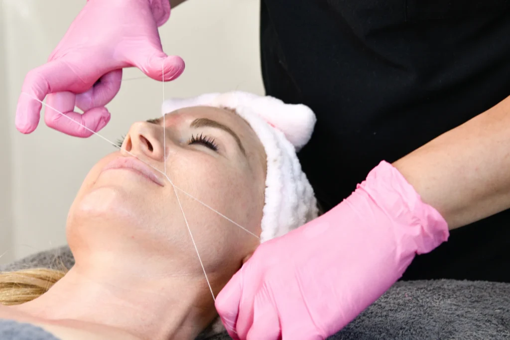 Threading is the go-to choice for clients who want clean, defined results without the mess of wax or harsh chemicals. It gives your brows and facial features crisp definition while still looking soft, natural, and camera-ready.